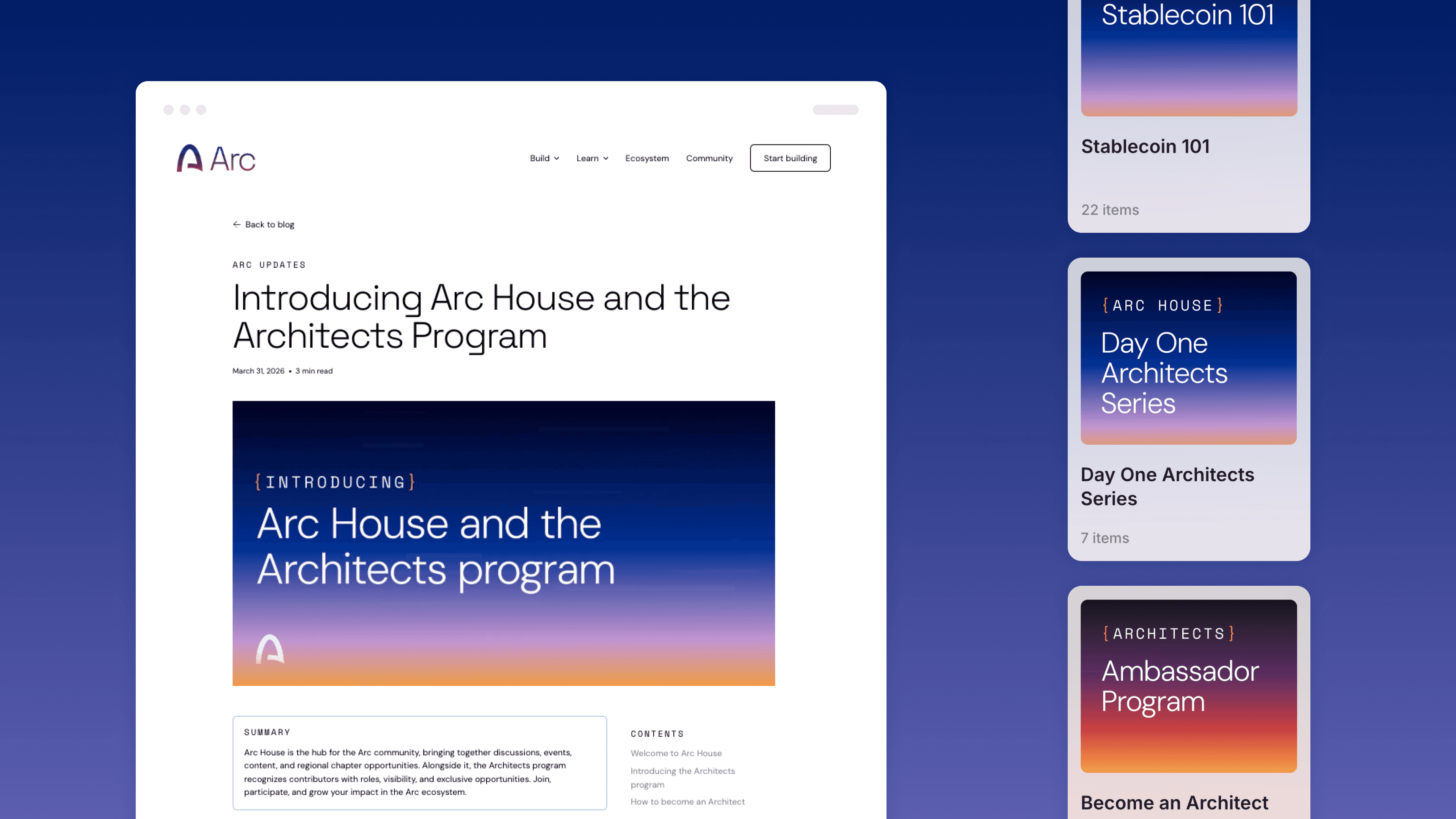 Arc House is the community hub for Circle’s Arc blockchain ecosystem, along with Architects, the program for ambassadors building on Arc. The program’s launch needed to introduce the Architects program while building on Arc’s emerging brand equity, rather than fragmenting it. The challenge was creating a distinct flavor for Arc House and Architects that felt connected to the main Arc brand, along with a technical feeling for insiders: appealing for elite developers but welcoming for non-developers alike. Building on Arc’s optimistic sunrise gradient system, I drew on contrasting bracket typography and code-like text treatments that reinforce technical credibility while adding warmth through bright, high-contrast color pairings. The launch generated significant buzz in the developer community, trending on X and driving early engagement among builders.